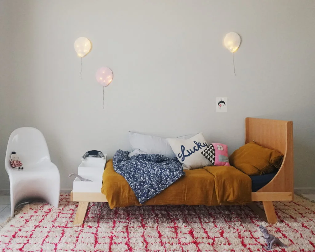 The starting point for this collaborative shoot was this gorgeous Krethaus Nido bed. The combination of natural alder wood, the high headboard and the clever boxes at the end make it a perfect bed for growing kids. The bed can be used for toddlers, and when removing the boxes, its perfect for bigger kids.